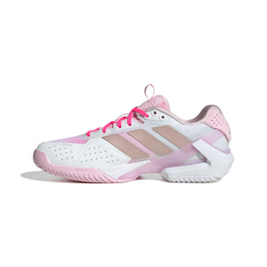 Experience the power of speed with the adizero Ubersonic 5 women's tennis shoes. Designed for performance tennis and pickleball, these shoes feature a Lightstrike midsole that redefines speed with its super-light design for dynamic movement. The Speedframe locks in the heel, supporting rapid changes of direction while the minimalist mesh upper offers seamless speed without slowing down your game. Made in part with recycled materials, these lace-up shoes are not just a standard fit but a testament to sustainable manufacturing methods. Trust in adidas to keep you at the top of your game.