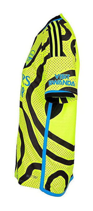 Introducing Arsenal FC's sleek and stylish 23/24 away player replica kit. Embrace the spirit of the Gunners with this modern design, combining a bold, dark color palette with eye-catching accents. Crafted from high-performance materials, this kit offers maximum comfort and breathability on and off the pitch. Show your unwavering support for the team and stand out in style wherever you go. Unite with Arsenal as they take on new challenges and conquer the football world in this iconic away kit.