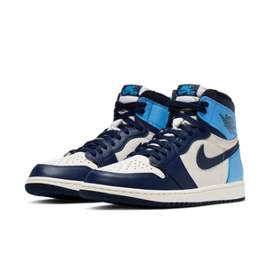 The AIR JORDAN 1 RETRO HIGH OG in Obsidian and University Blue showcases a classic silhouette updated with premium leather overlays in deep obsidian contrasted by vibrant university blue accents. This high-top sneaker offers exceptional ankle support and timeless style, making it a must-have for collectors and enthusiasts seeking both performance and iconic design.