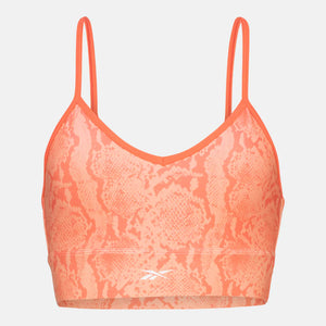 Crush your next workout in this Reebok sports bra. Designed to handle the rigors of training, it's double layered to deliver all the support you need. RBK-DRY technology takes care of sweat so you stay dry and cool. The racerback silhouette with an open back ensures a perfect fit.