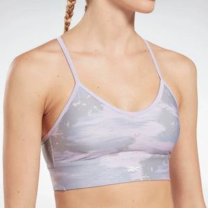 Find Another Gear In Your Most Challenging Workouts. This Reebok Sports Bra Is Designed For Low-Impact Workouts Like Pilates Or Barre. It Has A Flattering V-Neck And Removable Pads For Personalized Coverage. A Brushstroke Effect Gives The Camo Print A Distinctive, Modern Look.