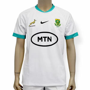The South Africa 2024 Third Jersey showcases a modern design inspired by the nation's rich cultural heritage. Made with lightweight, breathable fabric for maximum comfort, it features advanced moisture-wicking technology to keep you dry on and off the field. Ideal for fans and players alike, this jersey blends performance with style, making it a standout addition to your football collection.