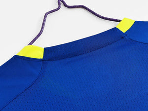 The Brazil 2020 Blue Training Season Kit exudes style and sophistication with its sleek design and vibrant blue hues. Crafted with precision, the jersey features a modern geometric pattern that seamlessly blends with the iconic yellow and green accents, paying homage to Brazil's rich football legacy. The lightweight and breathable fabric ensures optimal comfort during training sessions, while the innovative technology wicks away moisture, keeping players cool and focused. Embellished with the national crest and Nike's signature swoosh, this kit represents a perfect fusion of tradition and cutting-edge performance, empowering the Brazilian squad to train with confidence and flair as they prepare for their football battles.