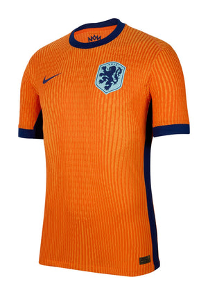 The Nike Netherlands 2024 home jersey is mainly "Safety Orange," combined navy ("Blue Void") and teal ("Copa").