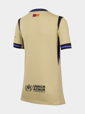 | Design Details | Replica design, inspired by historic gold FC Barcelona jerseys, snakeskin details, heat-transfer crest |