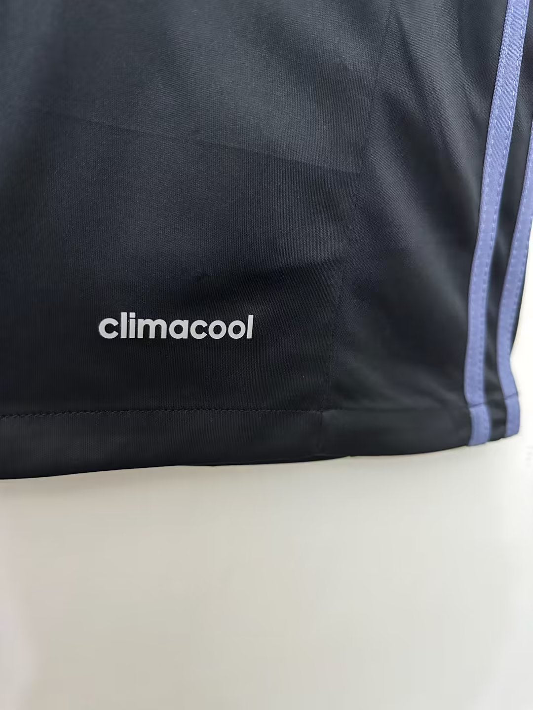 The Real Madrid Third Jersey 2016/17 Long Sleeve combines contemporary style with classic elegance, offering fans a sophisticated way to show their support for the club. Worn during the 2016 to 2017 season, this jersey features a sleek black design with striking teal accents, creating a bold and dynamic look. The long sleeves provide added warmth and coverage, making it ideal for cooler match days. Crafted from high-quality, breathable fabric, it ensures comfort and durability throughout the season. The jersey proudly displays the iconic Real Madrid crest and Adidas logo, symbolizing the club's rich heritage and commitment to excellence. This jersey is a must-have for any Real Madrid supporter looking to stand out with style on and off the pitch.