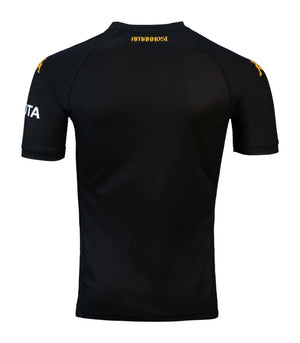 The Orlando Pirates 24/25 Away Jersey blends modern design with classic elements. Made from lightweight, breathable fabric, it ensures comfort during intense matches. The jersey features a subtle yet striking pattern, complete with the club's crest and sponsor logo on the chest, embodying the team's heritage and passion. Ideal for fans and players alike.