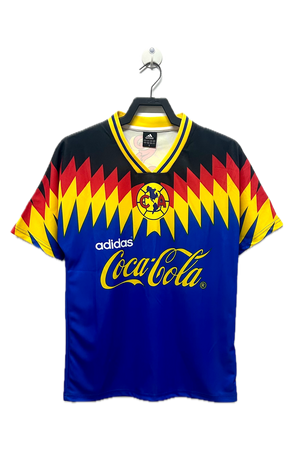 Embrace the legacy of Club América with the iconic 1995 Away Jersey. This jersey features a distinctive design in the club's traditional colors, reflecting the passion and pride of the Mexican football powerhouse. Crafted from high-quality, breathable fabric, it offers comfort and durability for fans and collectors alike. Complete with the club crest and sponsor logo, this jersey commemorates Club América's enduring presence and success during the mid-1990s.