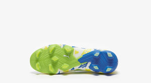 Introducing the Future Ultimate FG Neymar Jr in White Racing Blue/Lemon Meringue/Parakeet Green! This high-performance soccer cleat combines cutting-edge technology with Neymar Jr's signature style. With its lightweight design, superior traction, and dynamic colorway, elevate your game to new heights on the field.