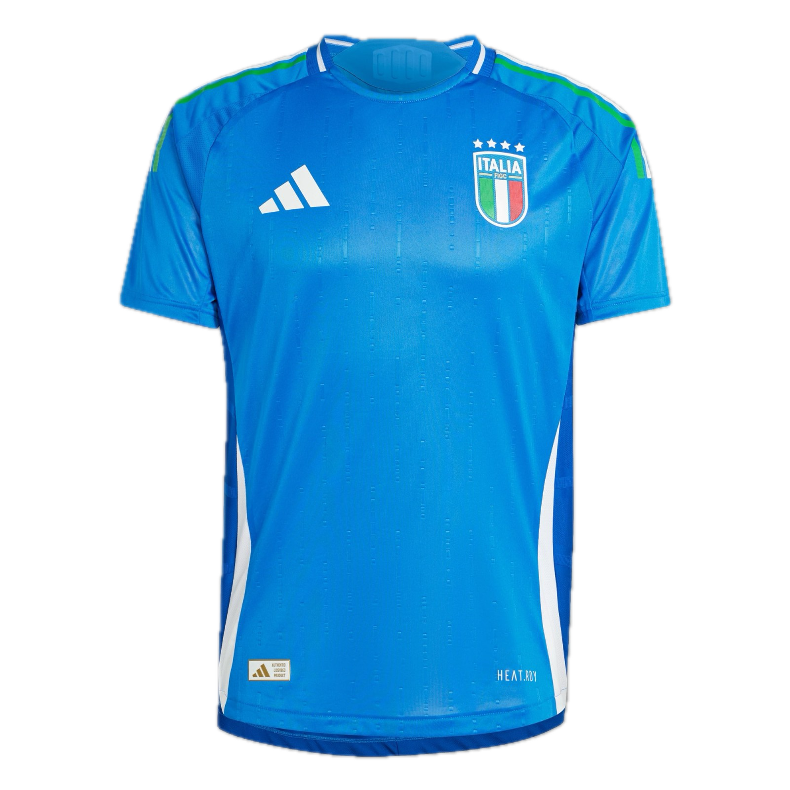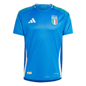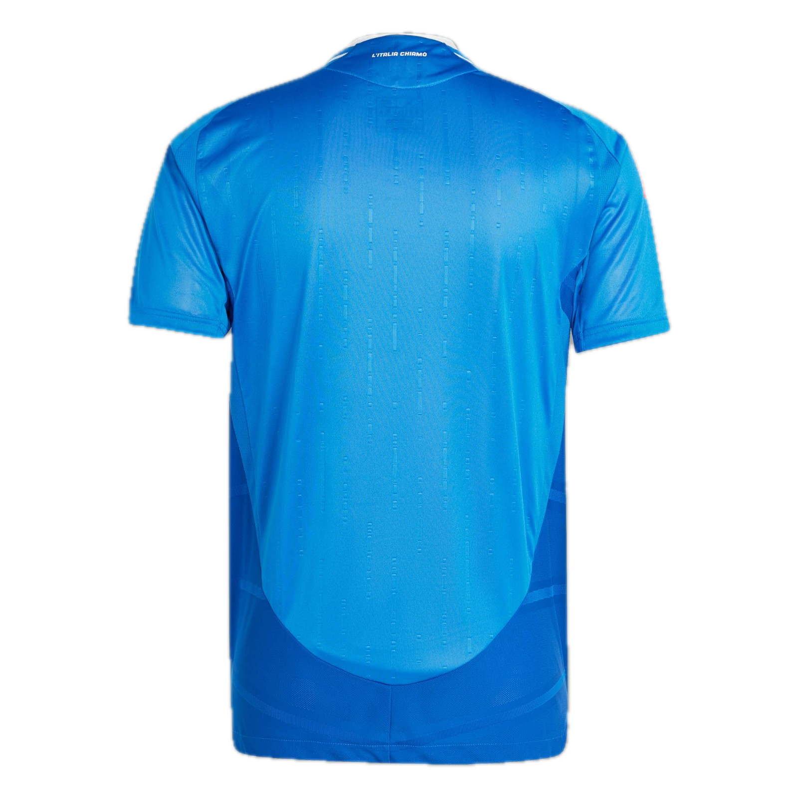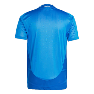 The Adidas Italy 2024 home jersey features a combination of blue and white with tricolor Three Stripes, which is the most remarkable feature of the kit.
