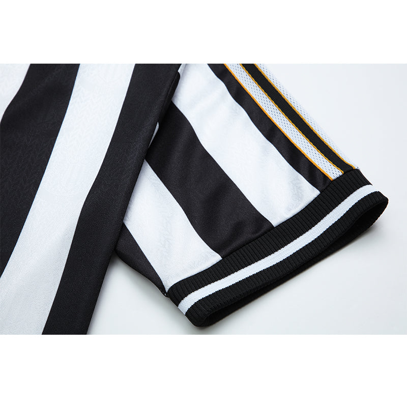 Celebrate the late '90s era of Newcastle United with the 1997-1999 Home Jersey. This iconic jersey features the traditional black and white stripes, capturing the spirit and heritage of the club. Crafted from high-quality, breathable fabric, it offers both comfort and durability. Complete with the classic club crest and sponsor logo, this jersey is a must-have for any dedicated fan or collector, embodying the essence of Newcastle United during this memorable period.