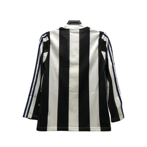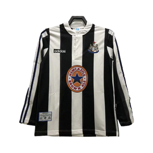The Newcastle United 1999/2000 Home Jersey is a faithful reproduction of the kit worn during their memorable Premier League campaign. It features the classic black and white stripes, the club crest, and sponsor logo. Made from high-quality materials, it offers comfort and performance. The V-neck collar adds a stylish touch, and the jersey commemorates the iconic 1999/2000 season. Available in various sizes, it is a must-have for passionate fans and collectors alike. Own a piece of football history and show your support for Newcastle United!
