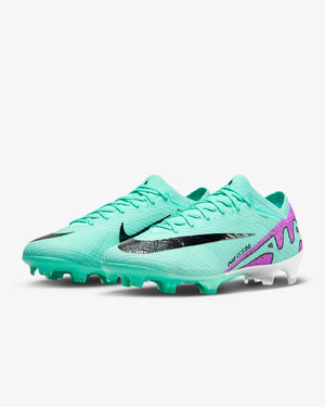 Introducing the Superfly 9 Elite Mercurial, a fusion of innovation and style. Featuring a striking Hyper Turquoise base with sleek Black accents, complemented by vibrant pops of White and Fuchsia Dream. Crafted for elite performance, its cutting-edge design offers unmatched agility, speed, and precision on the field.