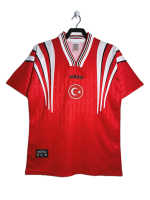 The Turkey 1996 Home Jersey captures the essence of Turkish football with its classic red and white design. Crafted from high-quality, breathable fabric for comfort and durability, it proudly displays the national crest. A cherished item for fans and collectors alike, this jersey commemorates Turkey's football legacy during the mid-1990s.