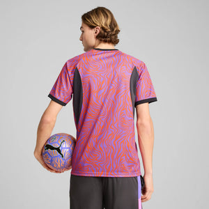 Unleash your creativity with this PUMA jersey. The new NJR collection takes a fresh twist with a link-up with Melo from the Hoops universe. Featuring a vibrant all-over print, NJR and PUMA Cat logos, and dryCELL technology, it's designed for those who play with passion. It is made with a regular fit for ultimate freedom on and off the field.