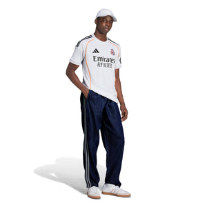 Built on firm foundations. This adidas Real Madrid home jersey marks the Bernabéu's latest refurbishment with a design featuring subtle shapes, textures and colors borrowed from its long and storied history. Created to be worn at the legendary stadium in the 25/26 season, it fields moisture-managing AEROREADY for comfortable support and an embroidered club crest for unmatched pride.