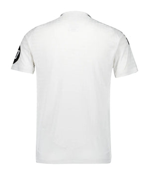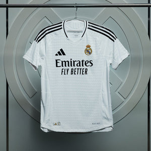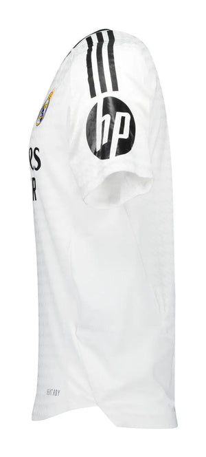 Embrace the legacy of Real Madrid with the 24/25 Home Womens Jersey. This classic white Womens Jersey features luxurious golden accents and the iconic embroidered crest. Made with lightweight, moisture-wicking AEROREADY technology and eco-friendly materials, it offers comfort and sustainability. The Womens Jersey includes official sponsor logos and can be personalized with a name and number. Available in men's, women's, and kids' sizes, it's perfect for cheering from the stands or daily wear. Show your support for Los Blancos in style. Hala Madrid!