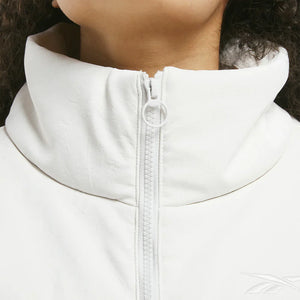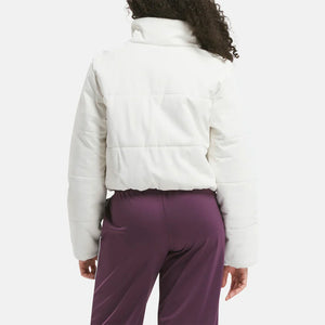 Go head-to-toe glam on the way to the gym in this women's Reebok jacket. Made of textured faux leather with a bit of shine, it has a puffer silhouette and is insulated for warmth.
