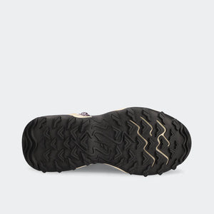 The waterproof upper and wrapping outsole pattern provide a secure fit and stability even in harsh outdoor environments.