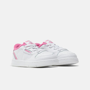Outfit your young style star in a retro court look. These toddlers' Reebok shoes have a leather upper with a clean, minimalist design. Elastic laces make them easy to put on wriggly little feet.