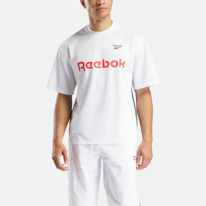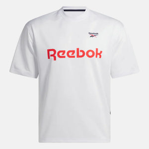 Let the world know you're on Team Reebok when you wear this jersey. A Reebok logo appears in the jacquard fabric for extra texture. An oversized Reebok logo has a sponsor-style look. An embroidered crosscheck signs things off.