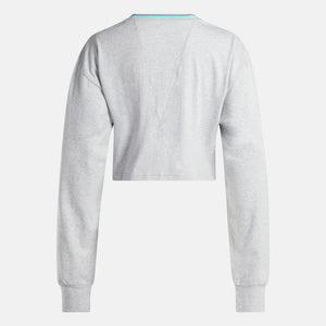 Feel the energy of the stadium crowd wherever you wear this women's Reebok crop top. The cropped tee has long sleeves and a relaxed shape. Tipping on the collar adds a pop of color.