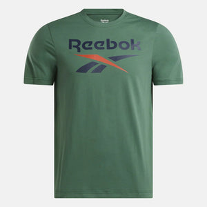Show some Reebok love during your downtime in this men's t-shirt. Soft cotton keeps you comfy all day and makes it feel like an old favorite right from the start. A bold stacked logo finishes the look.