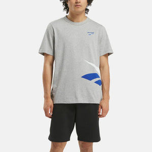 Show your Reebok pride in this men's t-shirt. Cotton jersey feels soft against your skin. A bold wraparound Vector graphic is taken straight from the Reebok archive for heritage athletic style.