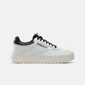 Rock a bold silhouette in these Club C Megacourt shoes. They bring the classic court look you want, with a stacked midsole that complements your unique perspective. The upper is all luxe, all day with full grain leather. Hits on the heel in textile add texture and depth. Two sets of laces provide options.