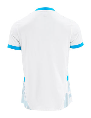 The Puma OM 2024-2025 Football Shirt combines Olympique de Marseille's classic white and sky blue colours with navy accents. It features a unique crest and innovative paneling, made from high-quality, breathable polyester with moisture-wicking technology. Available in sizes S to XXL, it offers both style and performance, perfect for showcasing your Marseille pride.