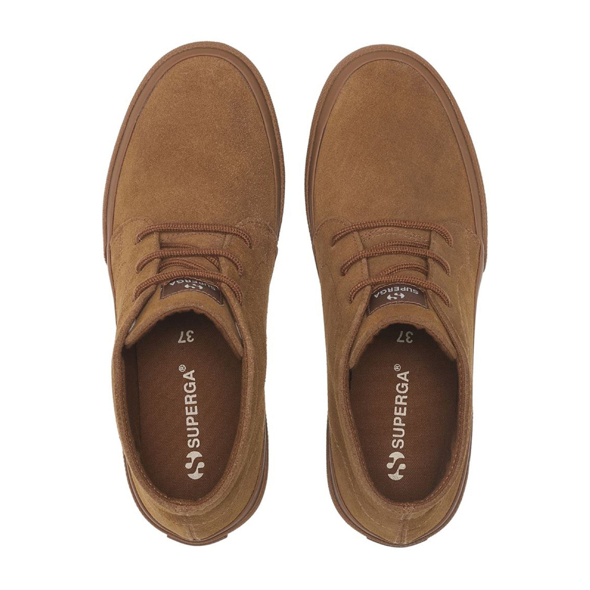 High-quality materials combined with an urban appeal: the Superga 2175  ankle boots, ideally paired with denim or classic chinos to complement everyday  casual looks, are made from rich suede and feature an uncluttered, ankle-high  silhouette and a lace-up closure with thin round laces. The vulcanised natural  rubber sole and the logo on the back affirm the brand's distinctive  signature.