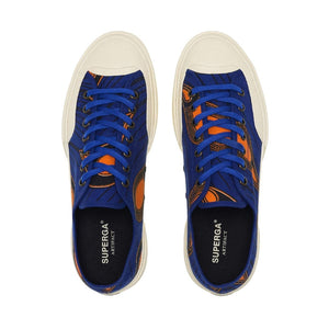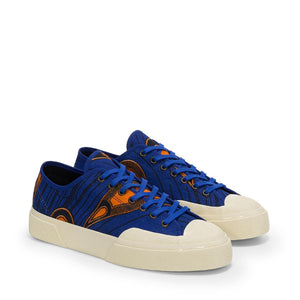 Works is the Superga Artifact sneaker crafted from printed cotton with  original Batik fantasy: the workwear-inspired ‘70s style, taken from the brand's  historical archives, adds personality to a clean and minimalist lace-up  silhouette with a cup sole, a slightly squared toe and reinforced lateral rubber  panels.