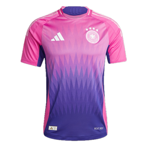 The Adidas DFB Euro 2024 away football shirt has a bold and new color combo for the German national team. The Adidas DFB 2024 away football shirt combines pink and purple. Officially, the colors are Semi Lucid Fuchsia / Team College Purple.